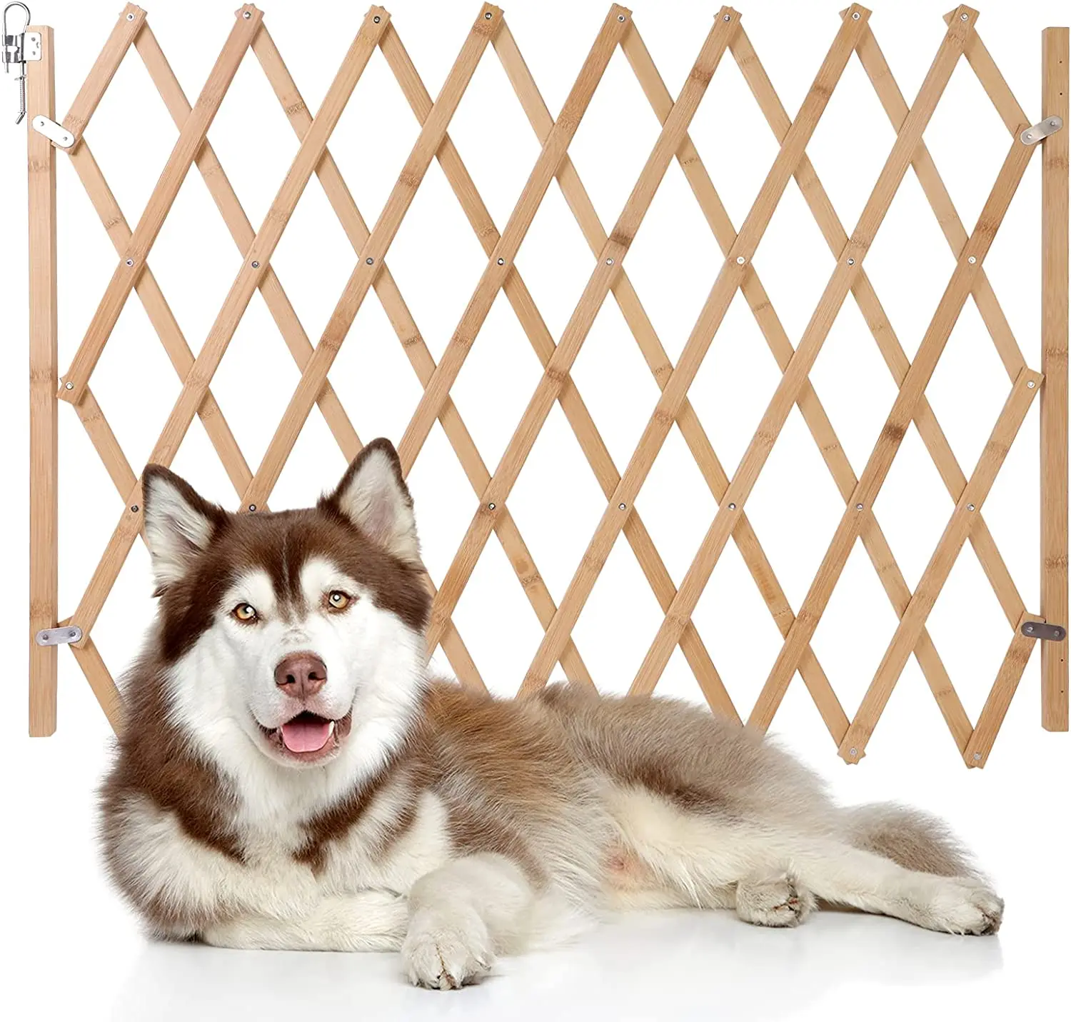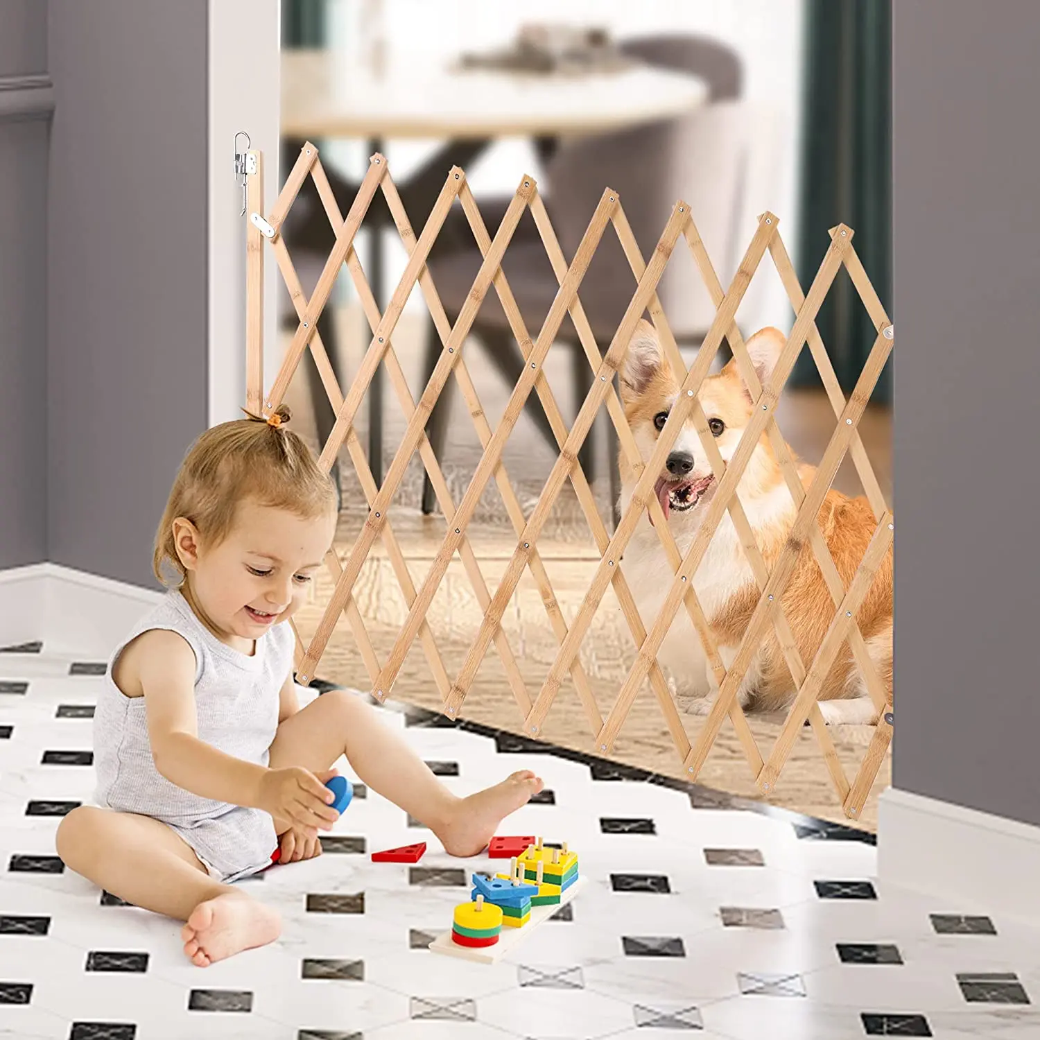 Haustiertor, erweiterbarer Hundezaun, Holz-Fliegengitter, Akkordeontore, tragbar für Türöffnungen, Hundetor, Haustiersicherheit, Terrasse, Garten, Rasen